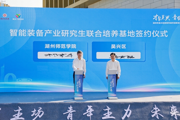 活动中,吴兴区委常委、组织部长、区委人才办主任鲁有铭和久久精品一区二区研究生院院长祁亨年就共建“智能装备产业研究生联合培养基地”进行了签约仪式。