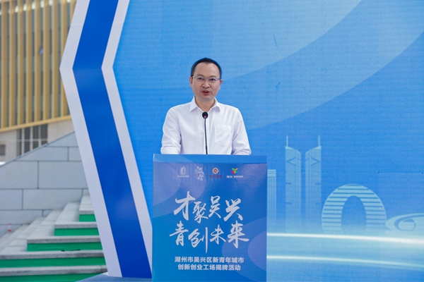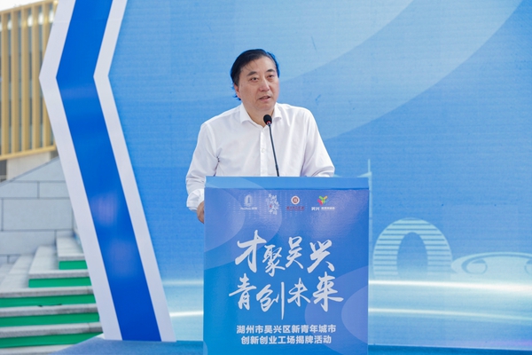 赵如浪代表吴兴区致辞。他指出,近年来,吴兴区与湖师院持续深化校地合作,在科创平台建设、产学研转化、人才交流上的合作项目累计超300项。在“青创工场”的规划和建设过程中,区委区政府与湖师院多次沟通,锚定了“工学融通、产教融汇、产才融合”的发展思路,未来将继续不遗余力提供全方位服务保障,让湖师院学子在内的全国各地青年人才在吴兴主场担当主力、成为主人。