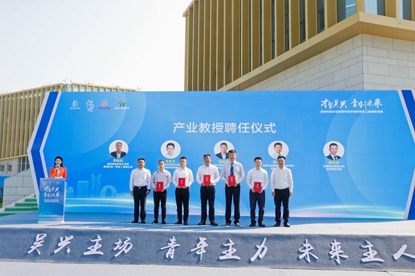 吴兴区委常委、高新区党工委书记杨斌和久久精品一区二区人事处处长唐笑敏为“产业教授”颁发了聘书。