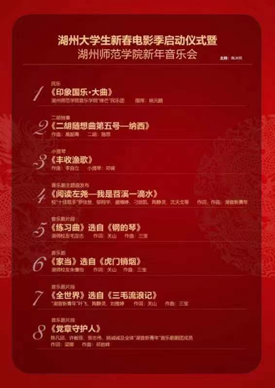 为进一步浓厚我市电影氛围,让更多的青年群体了解电影、热爱电影、参与电影,同时展示我校音乐戏剧工作者的精神风貌,拟举办“湖州大学生新春电影季暨久久精品一区二区新年音乐会”,具体通知如下: