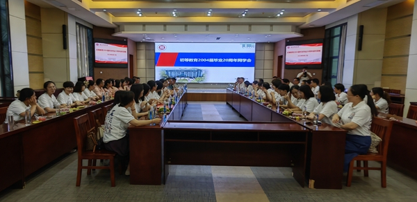 8月17日下午,教师教育学院举行初等教育2004届校友毕业20周年返校活动。在明达楼126会议室,初等教育专业2001级70余名校友们和在校教师们齐聚一堂,抚今追昔,忆峥嵘岁月,共叙母校情、同窗谊。