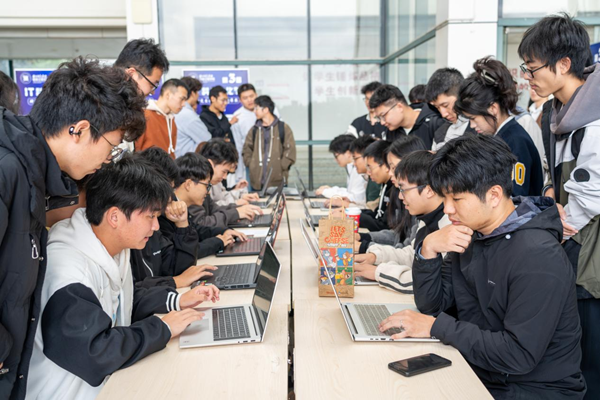 师生们齐聚31幢二楼平台,参与一系列精彩纷呈的IT科技活动。活动现场设有“创意代码竞速”挑战赛、“IT科技文化节成果展””IT科技文化节实物展示”。其中,智能控制器机器人、Xin-light机械臂等项目尤为吸睛,各个科研项目的学生负责人向参观师生详细讲解了研发历程及设备功能,引发了现场的热烈讨论。