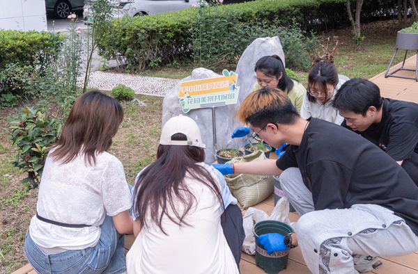 在充满生机的生命花园,大家分工协作,清理杂草、修剪枯枝、捡拾垃圾,为绿植浇水施肥。在毕业生们的精心打理下,花园重现盎然生机。